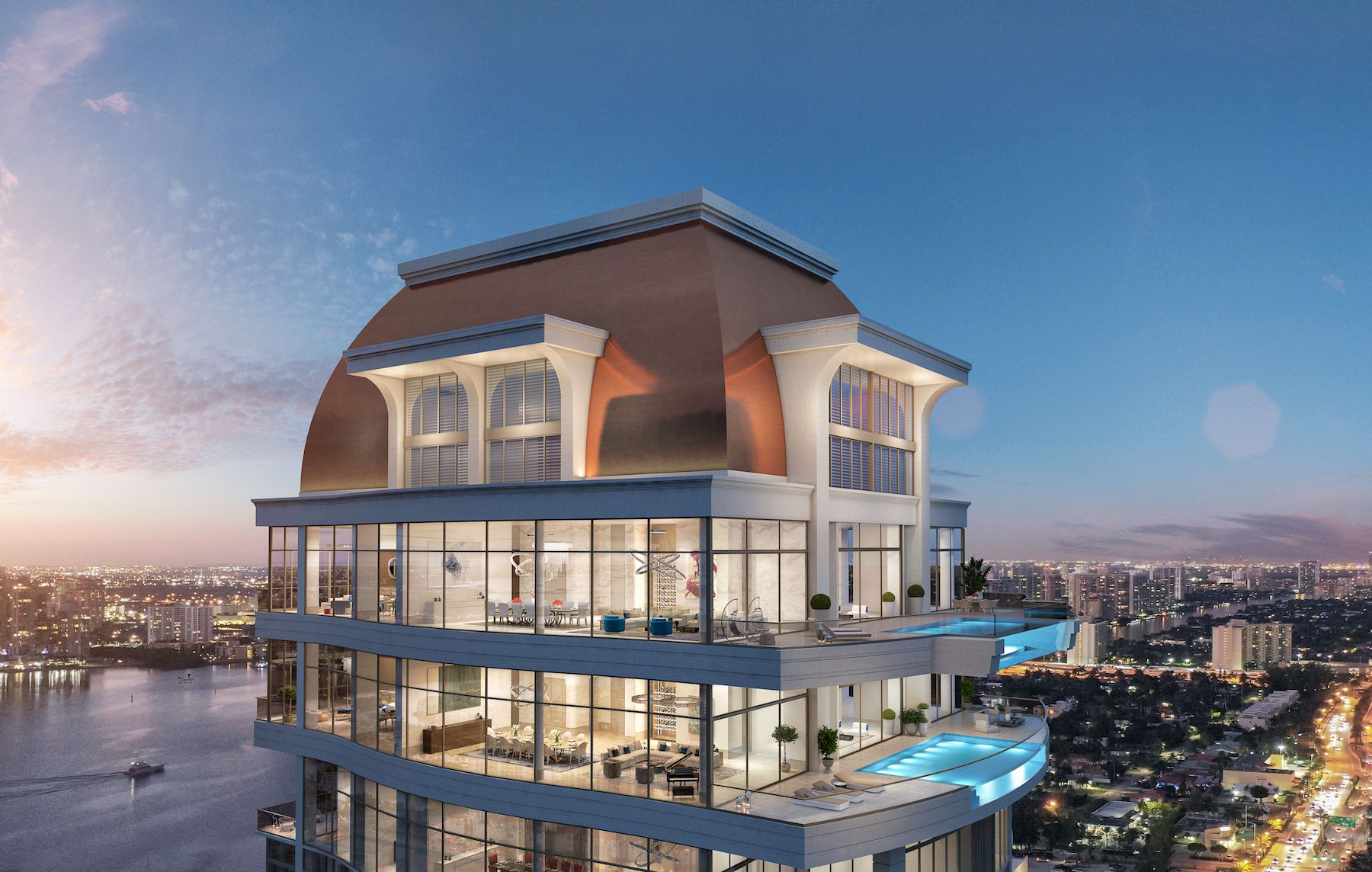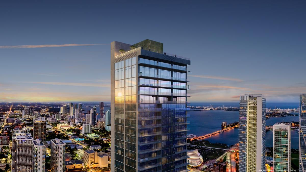 > Views of the Miami skyline, Biscayne Bay, and the Atlantic Ocean